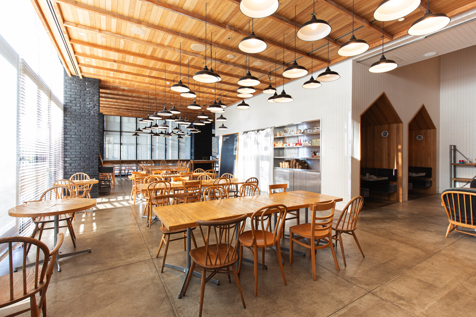 카페 기반의 개방적인 공간에 더해, 우드 데크 테라스까지 연동 가능한 구성이며(도어 오픈 시 활용), 자연광이 들어오는 분위기라 전시·브랜드 체험·촬영 모두 무난합니다.